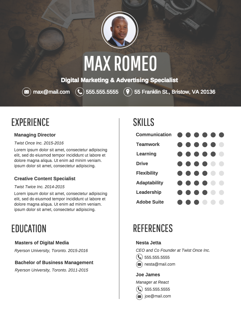 Cv, Resume Template. Minimalistic Style for Business Design. Blurred Avatar. Typographic Design.